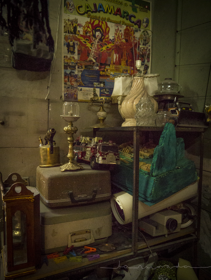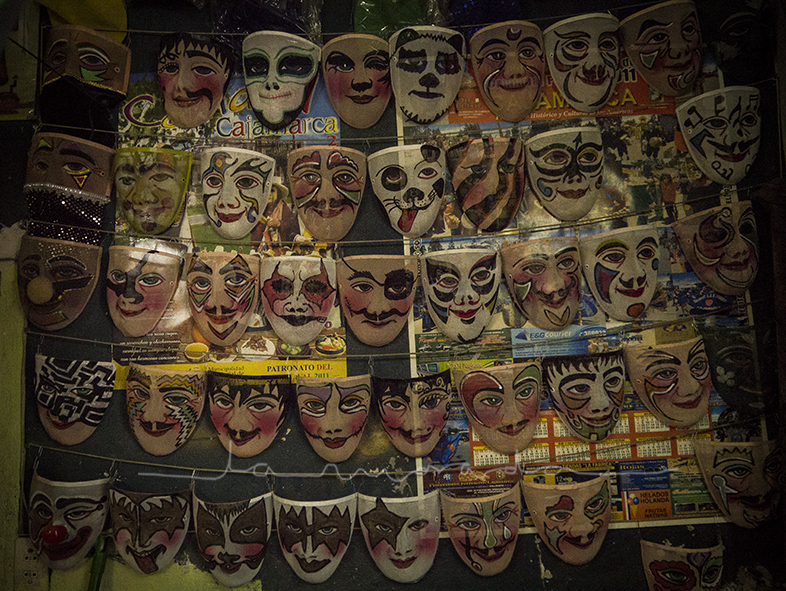 Caminando por la calle Junín en Cajamarca, me llamó la atención un letrero que decía "Curso de Máscaras". Así conocí al restaurador y artesano Roberto Aguirre. Dicen que no existen las casualidades, tenía que conocer las auténticas máscaras del carnaval cajamarquino (me creaba un poco de confusión, ver en las calles máscaras con estilo veneciano como souvenir). Él me contó que mantiene la tradición desde hace 150 años y que aprendió el oficio de su padre, que a su vez también lo aprendió de su padre. Cuando hay interesados, el señor Aguirre dicta talleres de máscaras esporádicamente. Mantiene su firmeza y pasión, pero también se ayuda haciendo maquetas para alumnos de colegios. En el taller la luz es puntual, hay un televisor prendido, se nota que es un acumulador confeso. Una extraña sensación de rostros te observan por todos lados, son las máscaras de mallas de alambre, las imágenes religiosas de yeso y los "cristos" tallados en madera. Hay tradiciones que se pierden con el tiempo, espero que ésta no sea el caso.